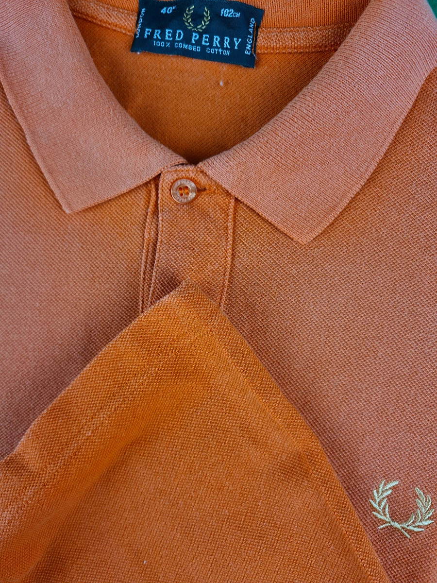 Vintage Fred Perry Poloshirt Ausgewaschen Orange (40, 102cm) M-L
